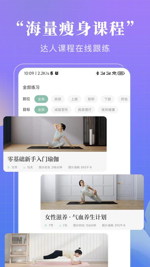 提供身体各部位的瑜伽训练:针对肩颈、腰背、髋部等常见问题区域,设计专项理疗课程。每个部位都有完整的训练体系,从放松到强化再到拉伸,形成完整的练习闭环。