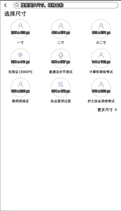 支持各类证件照尺寸规格,从常见的一寸、二寸照到各类考试报名专用照片,应有尽有。满足所有证件照尺寸要求: