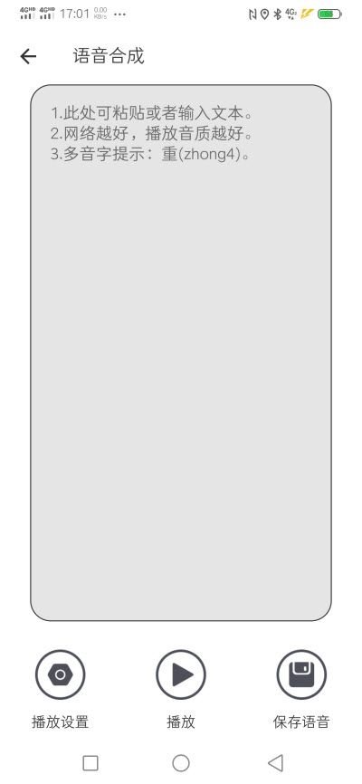文字转语音精灵不仅功能全面,还特别加入了拍照识别和在线配音等实用功能,让语音处理变得更加便捷高效。无论是专业人士还是普通用户,都能在这款软件中找到适合自己的语音解决方案。