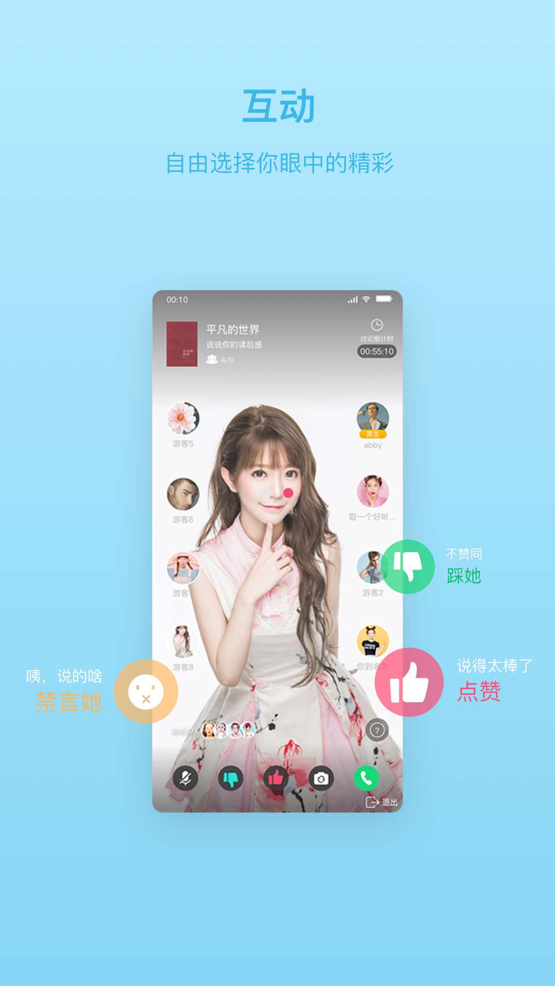 在"享书言",您可以在志同道合的人群中寻找不同的声音,平台支持文字、语音、视频等多种交流形式。通过发起、参与或者旁听一场讨论,发现一千个人眼中的一千个哈姆雷特;系统会根据您的阅读偏好,智能推荐适合参与的讨论话题。您可以在千万次的讨论中自由选择你眼中的精彩,平台还提供书单共享、读书笔记云同步等实用功能。为优秀的观点点赞、为平淡的观点点踩、为粗糙的发言送上禁言,这些互动数据将帮助系统优化推荐内容。希望您在这里和万千书友畅所欲言,实现思维和灵魂的碰撞与升华!