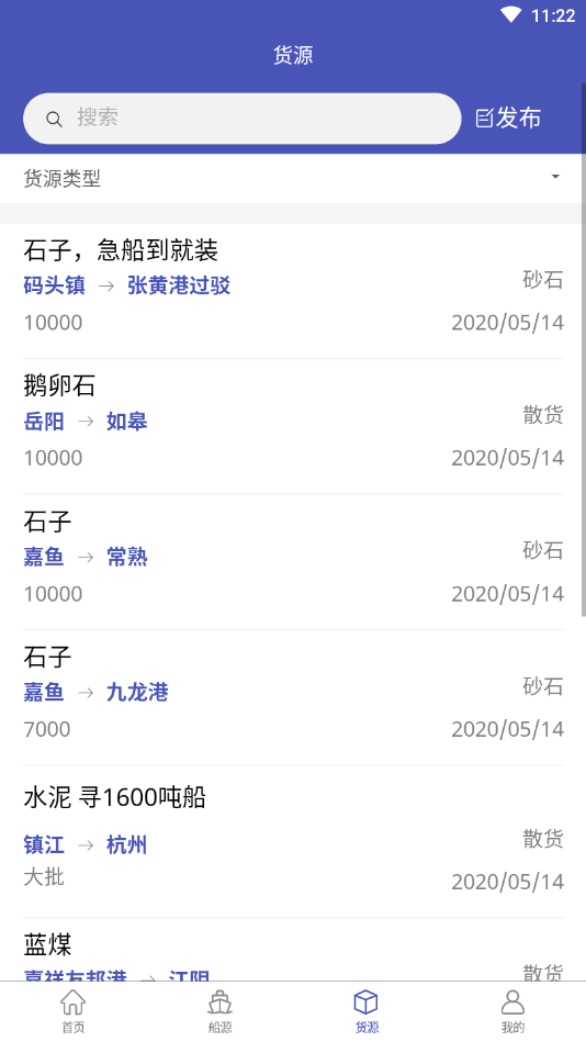 货主可以在平台发布船源信息:出发港,到达港,货物重量,出发时间,联系方式等信息:支持批量发布和智能报价功能,简化货运流程