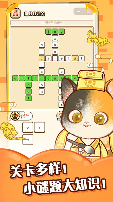 一场单词储备知识大检测,一款让你爱不释手的休闲益智小游戏,《单词喵》带你一起领略单词之美,快来下载吧!