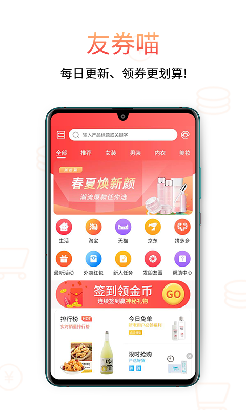 友券喵是一款专为购物爱好者打造的优质省钱购物软件,拥有海量精选商品资源,涵盖衣食住行各个领域。平台严格把控商品质量,所有商品均经过专业团队层层筛选和质检审核,确保用户能够以超值价格购买到正品好货。在这里,您不仅能享受日常超低折扣,还能参与平台定期推出的限时特惠、满减活动和惊喜发放,让每一次购物都物超所值。