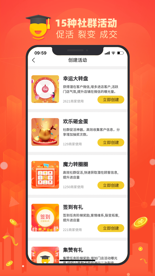【15种社群活动】:涵盖拼团、秒杀、抽奖等多种形式,通过社交裂变快速触达潜在客户