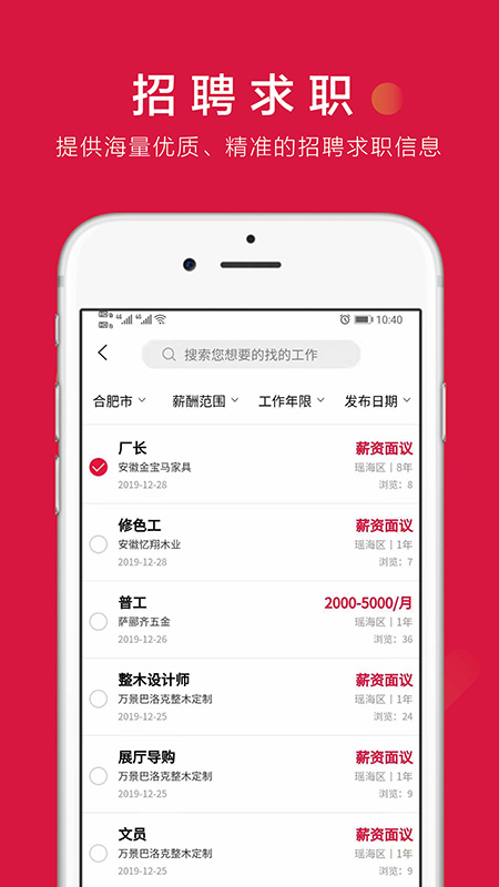 人才,是企业发展最核心的要素,聚匠堂家具行业管家为企业和求职者搭建完善的平台,通过智能算法实现精准人岗匹配。平台提供包括简历智能筛选、职位精准推送、在线面试等创新功能,大幅提升招聘效率。同时,用户可实时获取行业最新资讯和市场动态,掌握一手商机。平台还支持在线交易功能,让材料采购和设备流转更加便捷高效。