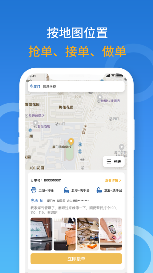 万帮修接单系统由厦门万帮修科技服务有限公司产品研发部精心打造,致力于为维修师傅提供高效便捷的接单体验。系统采用智能化管理,根据不同身份(如师傅、项目经理)展示相应功能模块,确保每位用户都能获得最适合自己的服务。平台支持多端登录,数据实时同步,让工作流程更加流畅。无论是订单处理还是客户沟通,万帮修app都能满足您的需求。