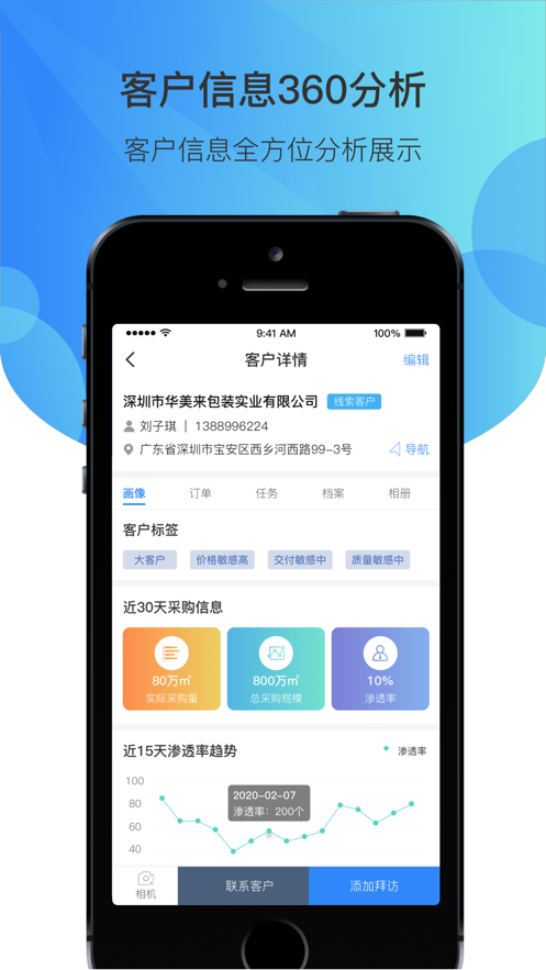【客户信息360分析】客户信息全方位展示,包括交易记录、沟通历史、偏好分析等