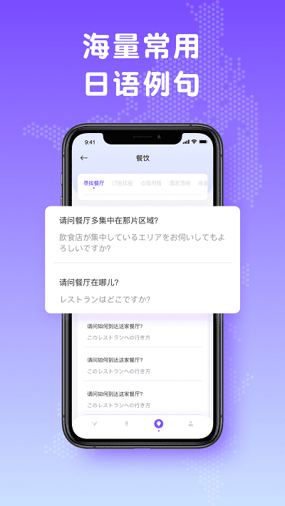 内置超过10000条实用日语短句,涵盖餐饮、交通、住宿、购物、医疗等20多个生活场景。每句都配有标准发音示范和中文解释,是出国旅游的必备神器。用户还可以自定义添加常用语句,打造专属的日语短语库。