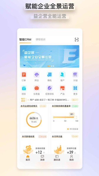 益企营app是一款专为企业打造的智能营销运营管理平台,致力于帮助企业提升运营效率、优化管理流程。作为一款功能全面的办公服务软件,它能够满足企业在日常运营中的多样化需求,从客户关系管理到财务预算控制,全方位解决企业管理难题。为了让用户更好地了解产品功能,我们特别提供免费体验服务,让您在试用过程中充分感受软件的强大性能。如果在使用过程中遇到任何问题,我们的专业客服团队将随时为您提供技术支持。这款软件绝对是企业管理者的得力助手,千万不要错过这个提升企业运营效率的好机会!