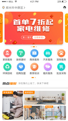 郑在豫约APP是一款专为家电维修和家政服务设计的智能预约平台,由河南行行行网络科技有限公司精心打造。平台整合了各类家居服务资源,包括维修、保洁、保养等,满足用户多样化需求。通过智能算法精准匹配服务人员,确保响应迅速、服务专业。无论是突发家电故障还是日常家居维护,都能在这里找到可靠解决方案,让生活更省心更便捷。
