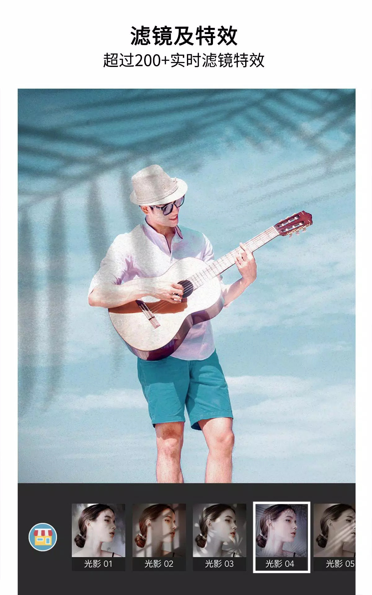 美颜滤镜任你玩,美肌效果实时预览。素颜自拍也能拥有好气色,自拍停不下来!「唯美录像」极短片视频功能,帮你瞬间美肌、美白及亮眸。从拍摄一刻起,立即闪闪动人,完整捕捉生活中每个美好时刻。新增的AI光影调节技术能智能识别面部轮廓,自动补光让五官更立体,即使在昏暗环境下也能拍出明亮通透的自拍照。配合独家研发的肤色均衡算法,确保美颜效果自然不假面。