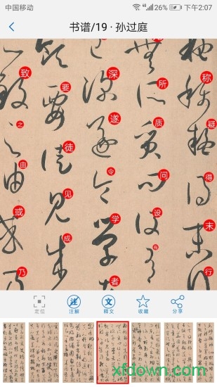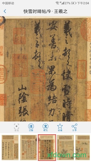 这是一部中国历代书法名帖大全,包含大量高清字帖、拓本,可以根据字帖名、作者名或字帖内容进行快速查询,并配释文注解。特别增加了作品赏析功能,由专业书法家撰写点评,帮助用户提升鉴赏水平。