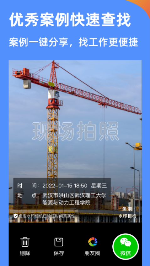 提供专业的项目工程水印和考勤水印功能,通过现场水印拍照确保工作记录的真实性。水印内容包含详细的项目信息和拍摄时间,方便后期追溯和核查。