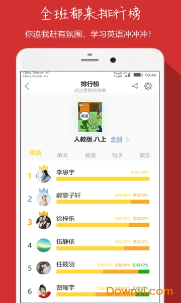 app创新的社交学习功能让英语学习不再孤单。系统会根据学习情况自动建立群组,同班同学可以在群组内查看各项学习数据的排行榜。除了综合排行榜外,还细分为单词、短语、句子、课文等子榜单,全方位展示学习成果。用户可以将自己的学习成就分享给家人朋友,通过社交激励保持学习动力。邀请码一键复制粘贴功能让组队学习变得异常便捷,真正实现了"一个app搞定所有学习需求"的便捷体验。