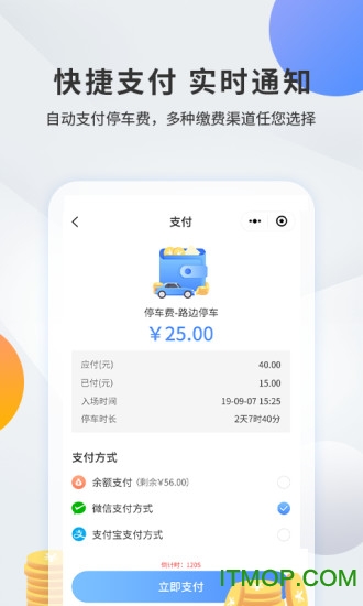 【快捷】自动支付停车费,多种缴费渠道任您选择,包括支付宝、微信、银联等多种支付方式,让缴费更轻松