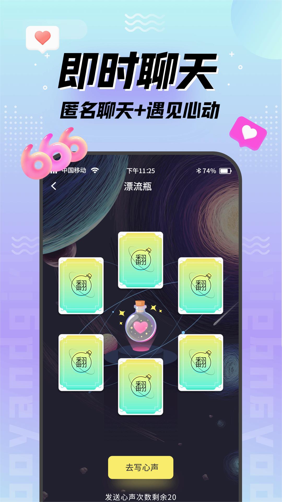 【漂流匹配】创新的匿名社交模式,让你可以毫无压力地表达真我,通过文字、语音等多种方式展开轻松愉快的交流。