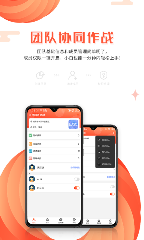 【团队管理】您可以轻松创建专属团队,自定义团队展示资料,并通过多种方式邀请成员加入。团队成员可以实时协作,共同完成营销任务。对于参与多个营销团队的用户,应用提供了便捷的团队切换功能,让您在不同团队间自如切换,提高工作效率。此外,团队管理还包括成员权限设置、任务分配等功能,确保团队运作井然有序。