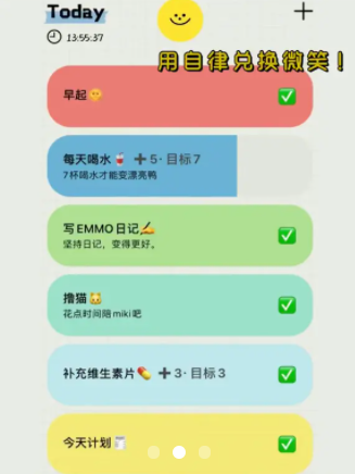 快乐打卡日记以"让坚持看得见"为核心理念,将枯燥的日常打卡转化为充满惊喜的成长旅程。软件独创的3D场景打卡系统,每完成一个目标就会点亮对应的星空岛屿,配合舒缓的白噪音和激励语录,让每次打卡都成为治愈心灵的仪式。特别设计的21天习惯养成模型,结合心理学记忆曲线,显著提升习惯养成成功率。