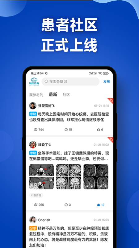 脑医咨询app是一款专注于脑科健康领域的专业医疗服务平台。该软件汇聚了全国顶尖的脑科专家团队,为医生和患者搭建了高效的沟通桥梁。医生用户可以在平台上进行学术交流、病例讨论,分享最新诊疗技术;患者用户则能获得专业的病情咨询、治疗方案建议和术后康复指导。平台采用先进的AI技术和大数据分析,为用户提供个性化的医疗服务,涵盖从疾病预防到术后康复的全周期健康管理,让脑科诊疗更加便捷高效。