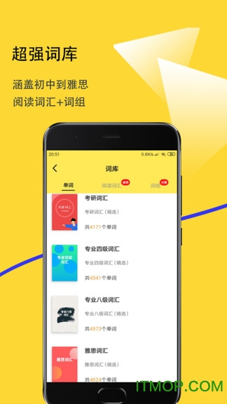 超强词库:包含从初中基础词汇到雅思托福高级词汇的完整体系,特别收录高频阅读词汇和实用词组搭配。