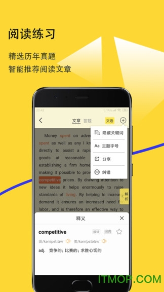 阅读练习:精选近10年各类英语考试真题,智能匹配用户水平的文章,附带详细的解题思路和词汇拓展。