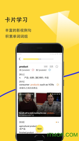 卡片学习:每个单词都配有影视原声例句、同义词辨析和词根解析,帮助理解单词在不同语境中的用法。