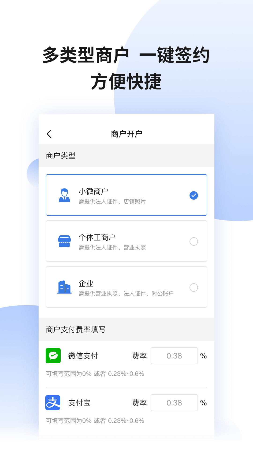 今天签约彻底简化了繁琐的商户信息填写流程。通过智能识别和自动填充技术,业务员只需几个简单步骤就能完成商户信息录入,大大降低了商户激活门槛。这不仅为商户节省了宝贵时间,也提升了业务员的专业形象,让商户对服务更加满意,从而建立起长期稳定的合作关系。