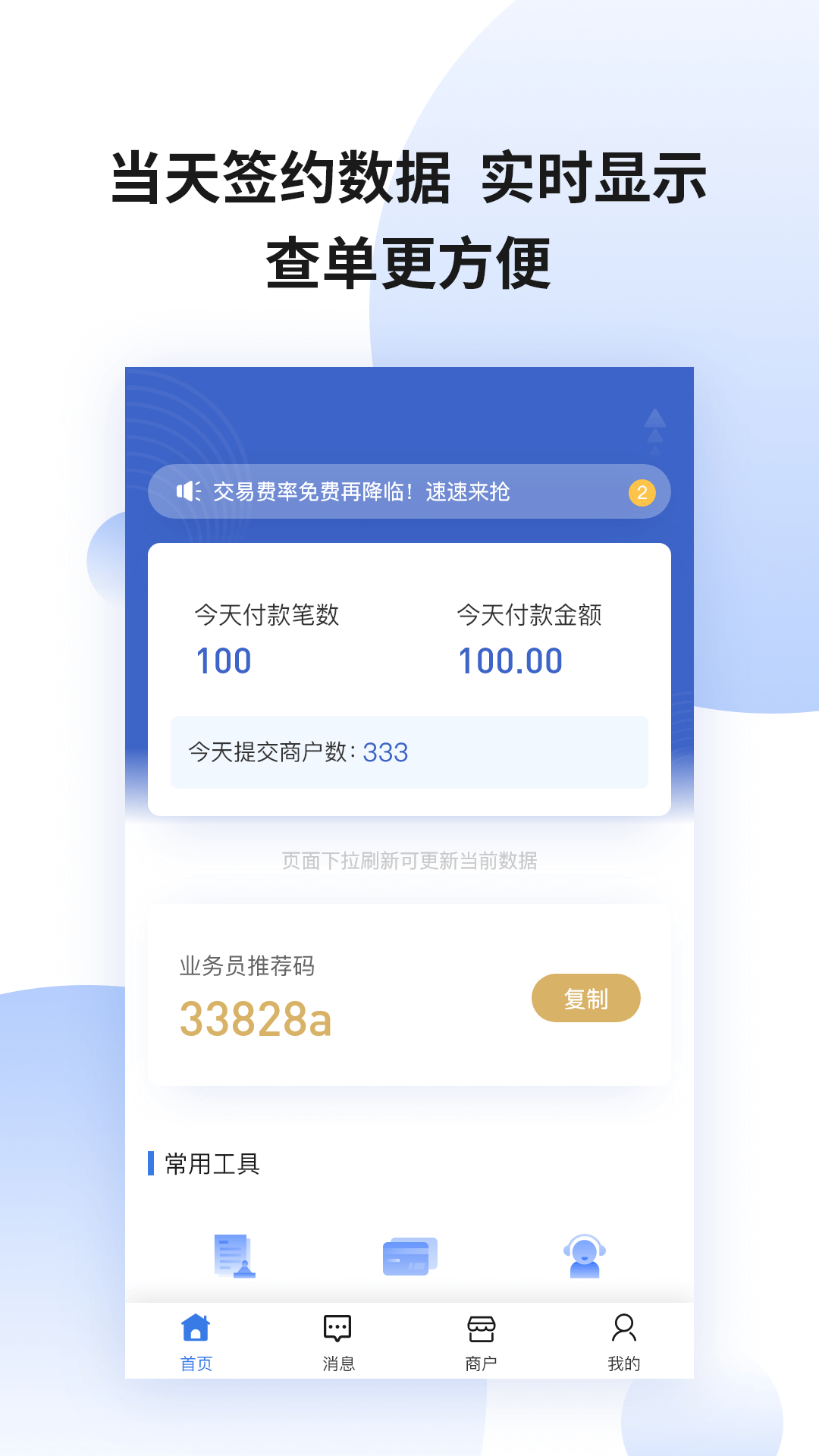 今天签约作为一款专业的商户销售管理工具,专为今天财码业务员量身定制。它打破了传统签约的地域限制,让业务员可以随时随地开展业务。无论是商户开通入网、激活账户,还是完成签约流程,都能通过手机轻松搞定。智能化的系统设计让整个签约过程更加流畅,大大缩短了商户等待时间,有效提升了业务员的整体工作效率。