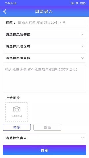 风险录入功能支持多维度分类,可快速选择风险等级、区域和点位,并自动生成风险分布热力图;