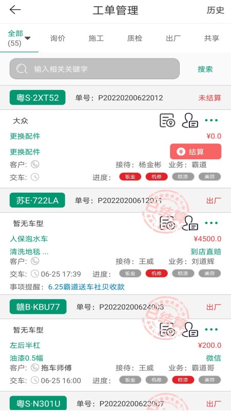 突破传统面对面交接的限制,实现全流程无纸化派工管理。通过智能终端即可完成派工任务分配,实时跟踪工作进度,确保每个维修环节都能高效有序地进行。