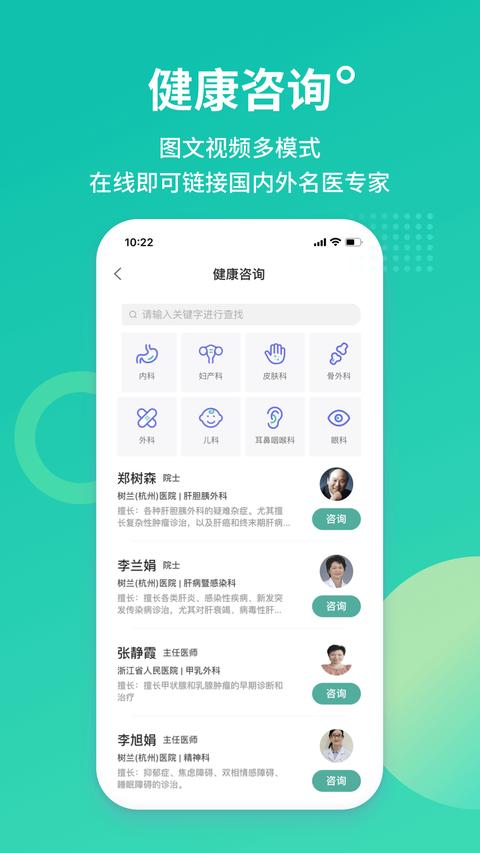 在这里有着很多的院士,医生们入驻平台,你可以和他们进行咨询,可以让你在这里咨询各个科室的问题,并为你提出解决方案,享受顶级医疗团队服务。