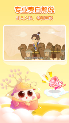 课程在播放动画视频的同时,配以专业的旁白解说。形象生动,娓娓道来,给孩子传授专业的历史知识,启发孩子的智慧。同时,通过语音,引导孩子独立思考,判定故事中的是非对错,潜移默化地塑造孩子正向的历史格局和价值观。解说词由资深儿童教育专家撰写,语言通俗易懂,富有感染力,能有效引导孩子思考历史事件背后的深层意义。