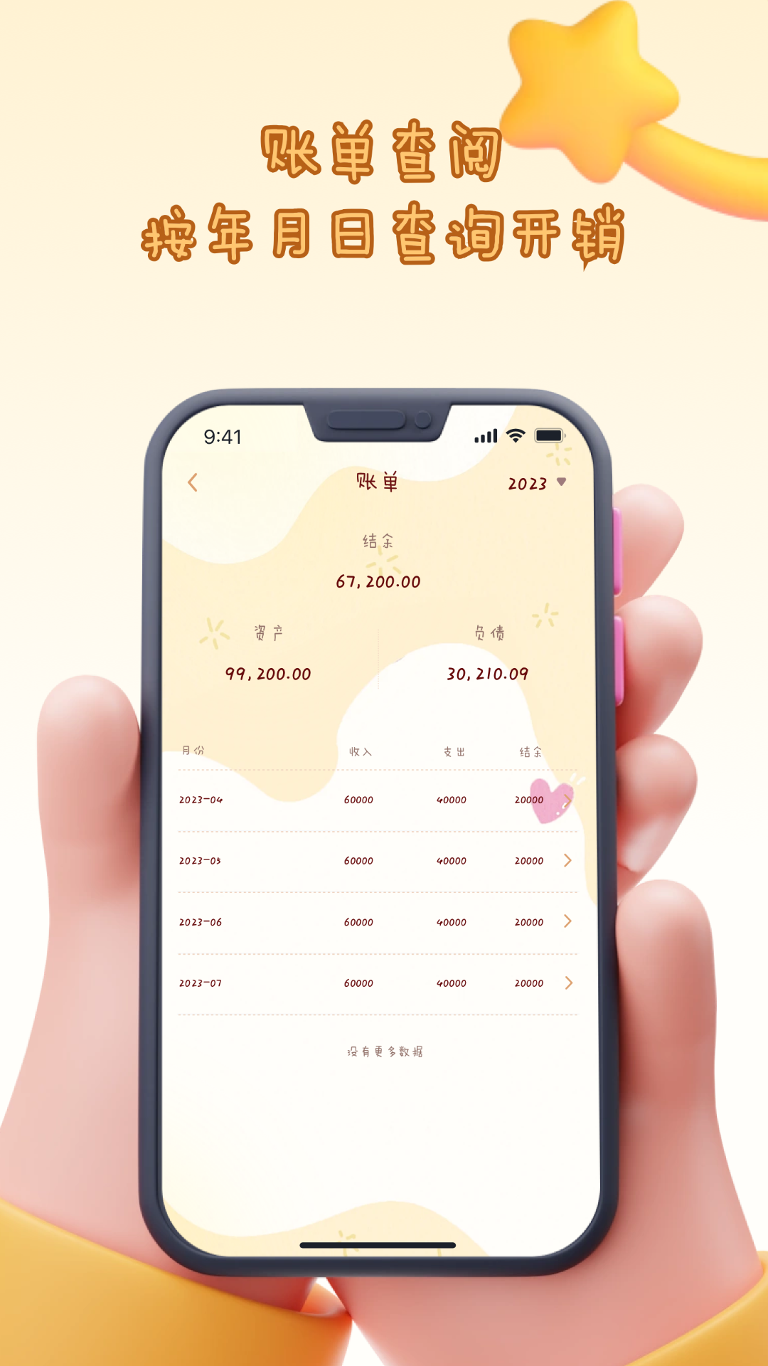 账本:支持各种账本,生意往来.亲子教育.装修.报销等等账本,自由编辑。可自定义账本封面和分类。