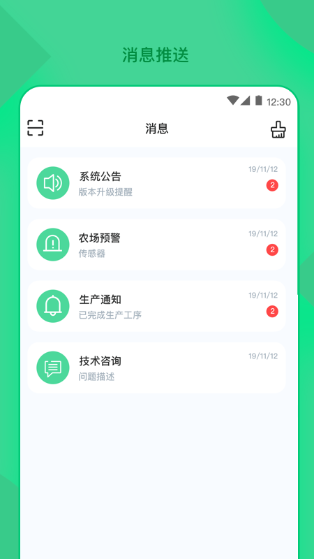 智能消息推送:根据用户需求定制个性化信息推送,包括市场价格波动预警、极端天气提醒、病虫害防治建议等。