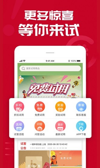 汇集所有免费试用及奖励试用商品,分类清晰,申请流程简单快捷,让你轻松获得心仪产品的试用机会。
