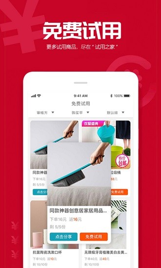 3、创新的收益机制,完成试用任务不仅能获得产品,还能赚取额外奖励,且试用商品无需退还。