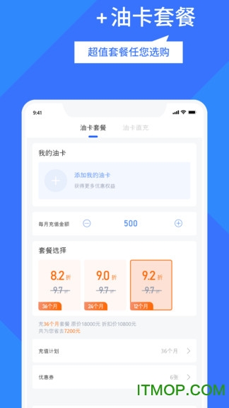 [车主加油]-根据用户年度加油量智能推荐最优套餐方案,最高可节省10%的加油费用;支持全国范围内油卡充值,满足长途出行需求;