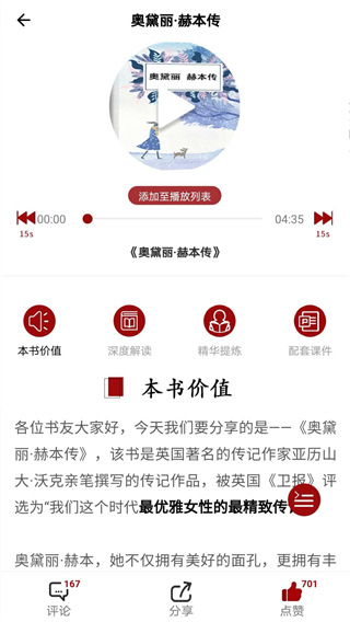 千本好书精彩解读:基于丰富的线下读书经验,平台设置了由浅入深的三级阅读体系,包括每日听书、深读书房和论语智慧。邀请专业作者和阅读达人进行书籍解读,从多个维度满足用户的阅读需求,帮助读者更好地理解作品内涵。