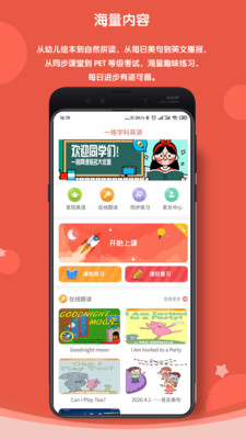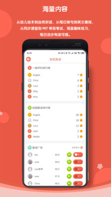 海量内容:涵盖从幼儿启蒙到自然拼读,从日常口语到专业考试的全方位内容。包含每日美句赏析、英文新闻播报、同步课堂讲解等丰富资源,让学习进步清晰可见。