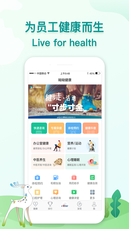 企业排行:量化运动,喊上同事一起来PK。通过部门间健康数据对比,激发团队活力。