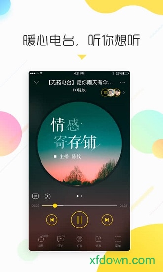 汇聚了众多专业情感主播和领域达人,他们用温暖的声音分享人生故事和情感智慧。你可以收藏喜欢的电台,关注心仪的主播,通过弹幕评论实时互动。平台还提供节目下载功能,让你在没有网络的情况下也能享受优质内容,随时随地获得情感陪伴。