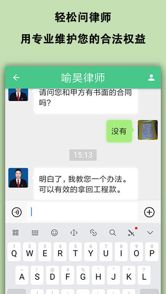 作为一款功能强大的法律咨询软件,轻松问律师致力于为用户打造最贴心的法律服务体验。平台采用创新的"先咨询后付费"模式,让用户在获得满意服务后再支付费用,充分保障用户权益。无论您遇到婚姻家庭纠纷、劳动纠纷、合同纠纷还是其他法律问题,都能在这里找到专业的解决方案。平台还提供24小时在线咨询服务,确保您的法律问题能够得到及时响应。