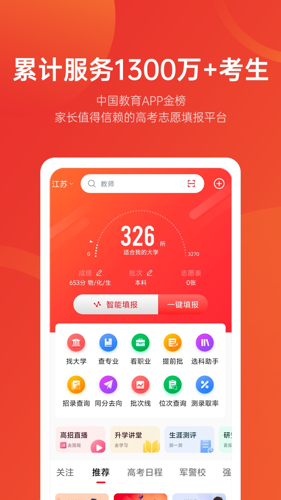 优志愿app官网版是一款专为高考学子量身打造的智能志愿填报辅助工具,凭借先进的大数据分析和人工智能算法,为考生提供科学、精准的院校和专业选择建议。这款软件整合了全国3000多所高校的历年录取数据、专业排名、就业前景等关键信息,通过智能匹配算法,帮助每位考生找到最适合自己的志愿填报方案,让高考分数发挥最大价值,助力实现理想大学梦。