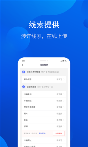 便捷、安全的举报和提交线索渠道。用户发现诈骗行为可一键举报,举报信息将直达反诈中心处理。