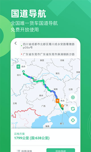 全国首创的货车专用国道导航系统,基于海量道路数据与实时交通信息,智能规避限高限重路段,为不同车型提供个性化路线推荐。系统持续更新全国路网信息,确保规划路线既经济又安全,平均可为司机节省15%以上的运输成本。