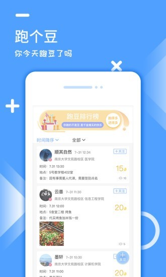 跑豆豆致力于为大学生提供更智能、更便捷的校园生活方式,通过创新的互动模式和丰富的信息渠道,让校园生活充满乐趣。软件整合了校园生活的方方面面,从日常需求到社交娱乐,都能一站式解决。独特的积分奖励机制让每次使用都充满惊喜,完成任务还能获得额外奖励。我们深入了解大学生的需求,精心打造每一个功能模块,确保每个用户都能获得最佳体验。追求品质生活的你,一定不能错过这款校园必备神器。