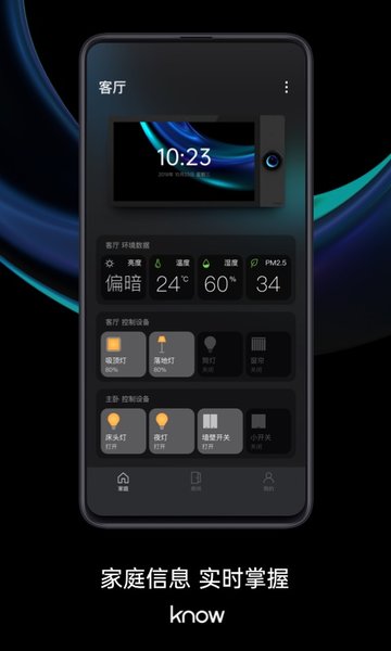 - 家庭信息,实时掌握:随时查看家中设备状态和环境数据