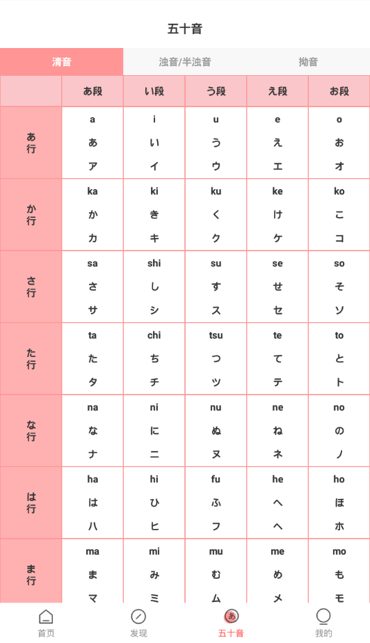 支持五十音图中清音、浊音、拗音以及平片假名的自由切换,并提供标准笔顺演示。创新的卡片式记忆法让五十音学习变得轻松有趣。完善的发音功能支持单个假名、整行假名和整段假名的连续发音练习。清爽简洁的界面设计搭配齐全的功能,让初学者也能快速上手。最重要的是,所有功能完全免费向用户开放。