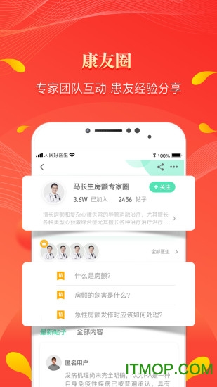人民好医生是一款集在线问诊、健康科普、医院查询、医患互动等功能于一体的综合性医疗健康服务平台。平台汇聚了全国三甲医院副主任医师以上的知名专家团队,通过定期问诊咨询、健康科普知识库、权威医院信息查询等服务,为用户打造全方位的健康管理解决方案。无论是日常健康咨询还是专业医疗建议,都能在这里得到及时、专业的解答。