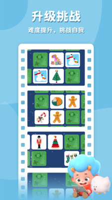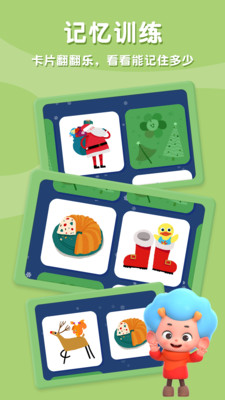 圣诞卡片翻翻乐是天才忆术家app中极具特色的节日主题游戏,让孩子沉浸在欢乐的圣诞氛围中。在这个充满节日气息的记忆游戏中,孩子们需要通过翻转卡片来寻找匹配图案,不仅能锻炼观察力和记忆力,还能认识各种圣诞元素。游戏采用简单直观的操作方式,配合欢快的圣诞音乐,让孩子在轻松愉快的环境中提升认知能力。色彩鲜艳的卡片设计和可爱的圣诞元素,能够有效激发孩子的学习兴趣,让他们在游戏中不知不觉提高记忆能力,向着"天才忆术家"的目标不断进步。